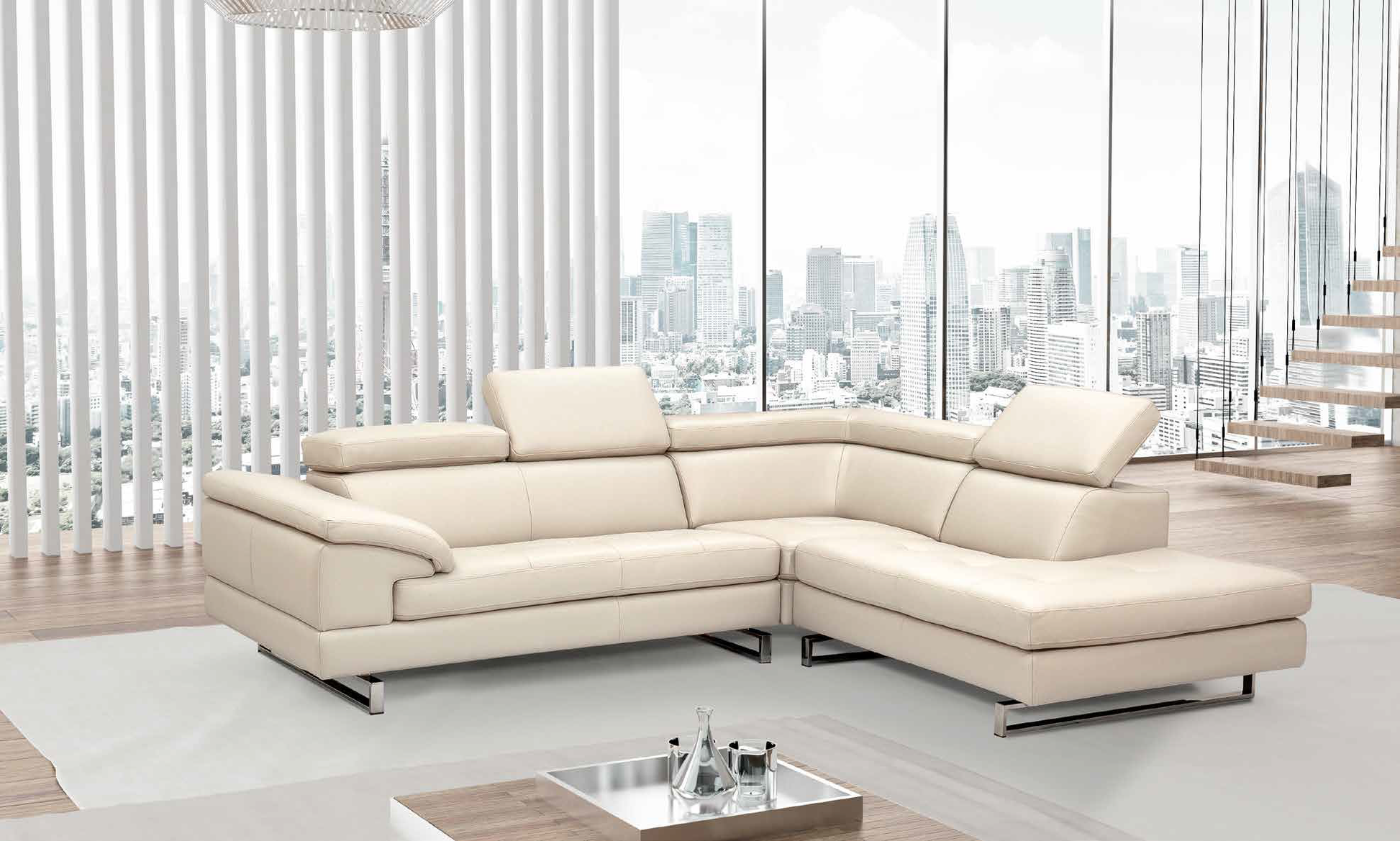 ABBILDUNGSZUSAMMENSETZUNG - 3SITZER1ARM-188CM - ECKE - 110 CM - ANBAUSESSEL - 125 CM / LEDER NATUR