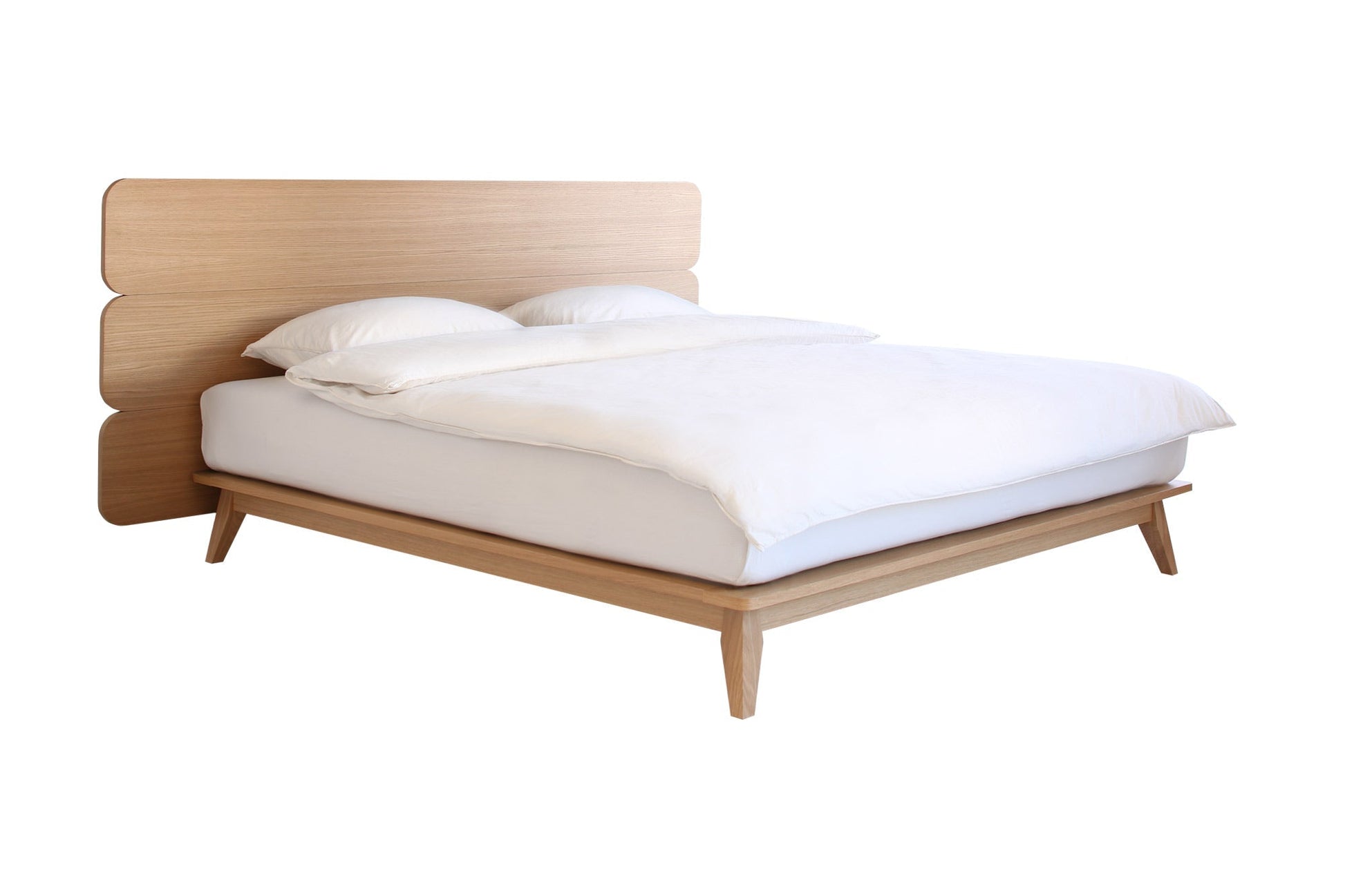 Das Enzo Bett bietet zwei Arten von Schlafzimmerlösungen – die Kombination des Bettes als Plattformbasis mit einer Matratze (wodurch ein minimalistisches ästhetisches Aussehen entsteht, ohne viel Platz im Raum einzunehmen) oder das Hinzufügen einer Holz- oder Stoffwandverkleidung zur Bettbasis. Mögliche Bettkombinationen: - freistehende Matratzenplattform; - freistehende Matratzenplattform mit an der Wand montierter Holzverkleidung; - freistehende Matratzenplattform mit Stoffwandverkleidung zur Wandmontage. Das Enzo Bett ist sowohl in Einzel- als auch in Doppelbettgrößen erhältlich.