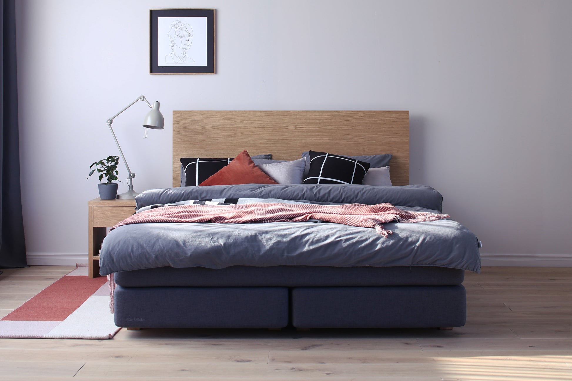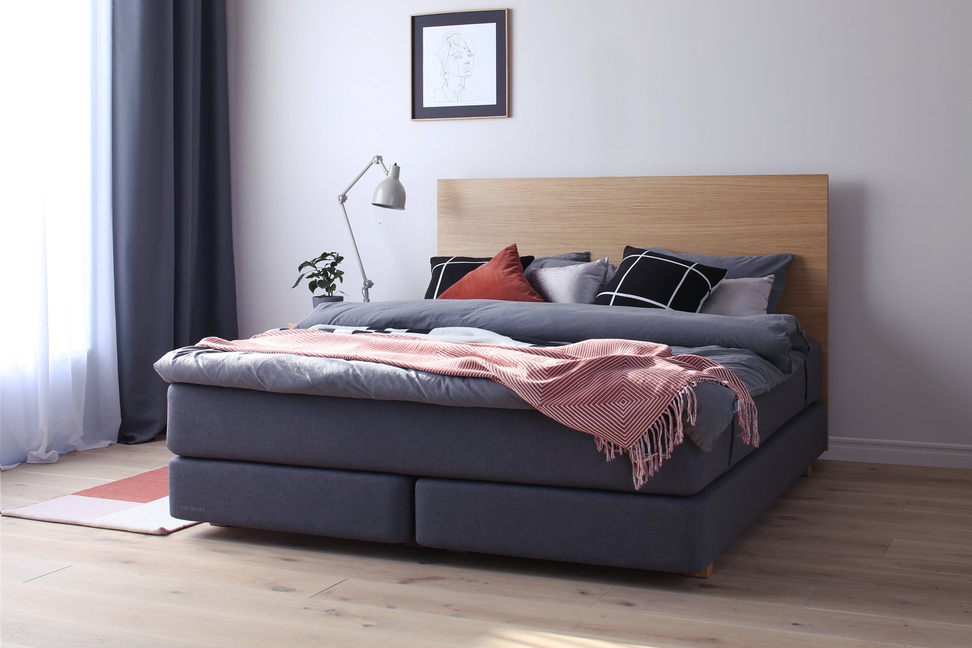 Das Continentalbett entsteht durch die Kombination von nahtlosem Eichenfurnier mit einem weichen und angenehmen Stoff. Das Design dieses relativ schlichten Kopfteils wird lange halten und in jedes Interieur passen. Der Raum unter dem Bett fungiert als praktische und geräumige Ablage (bei Bestellung eines Bettes mit einer der Matratzen aus der Kollektion „Pils Matrači“). Matratzen sind separat erhältlich. Das Riga Continentalbett ist sowohl in Einzel- als auch in Doppelbettgrößen erhältlich.