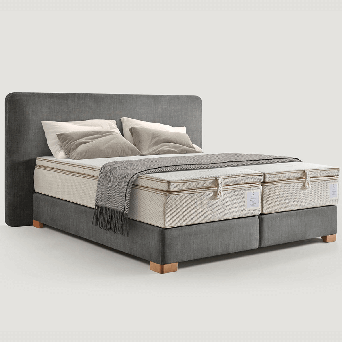 Wählen Sie: 1-Ihre Bettgröße 2-Kopfteil + 3 Boxen + 4 Matratze + 5 Topper + 6 Stofffarbe und BESTELLEN